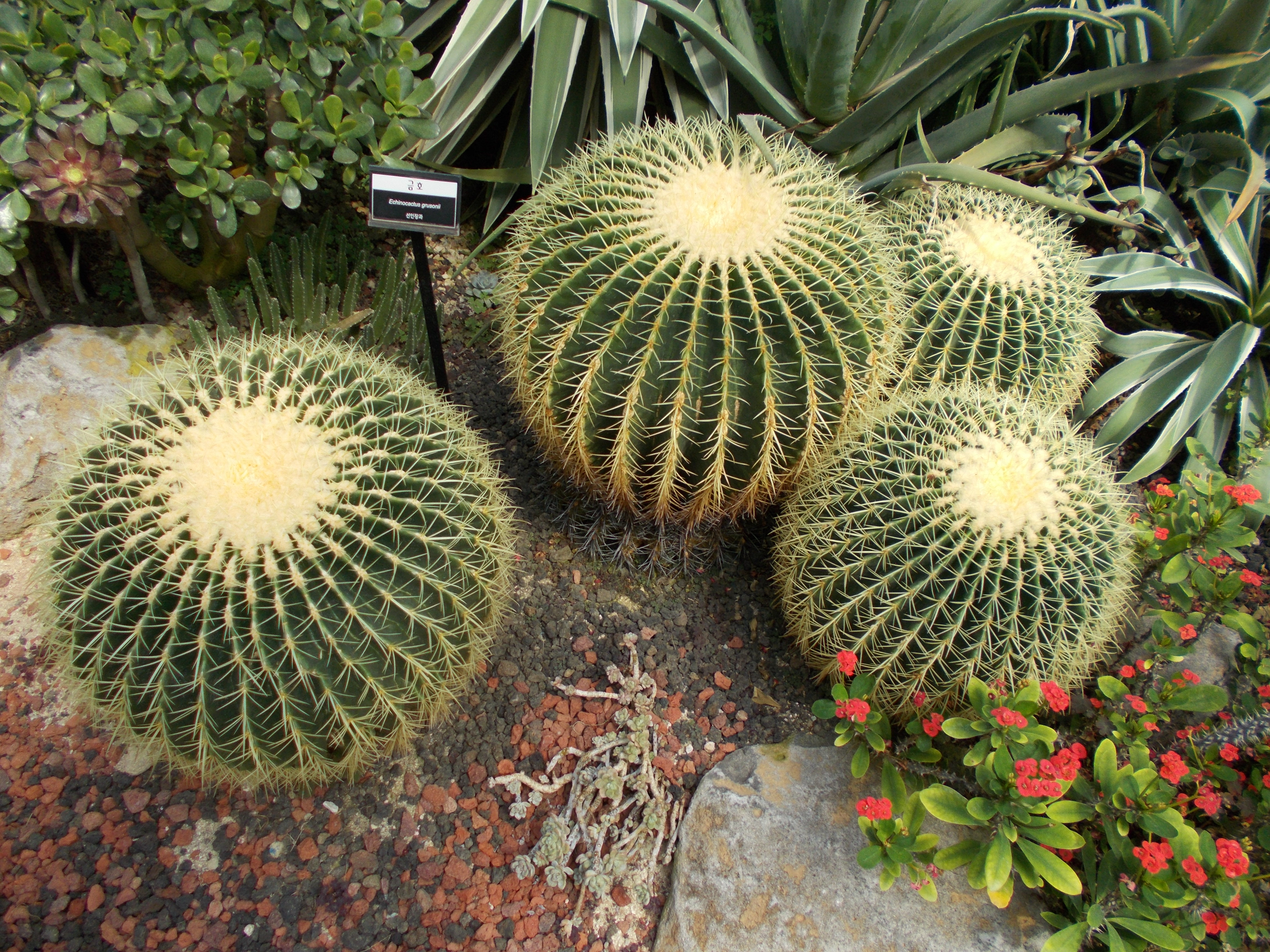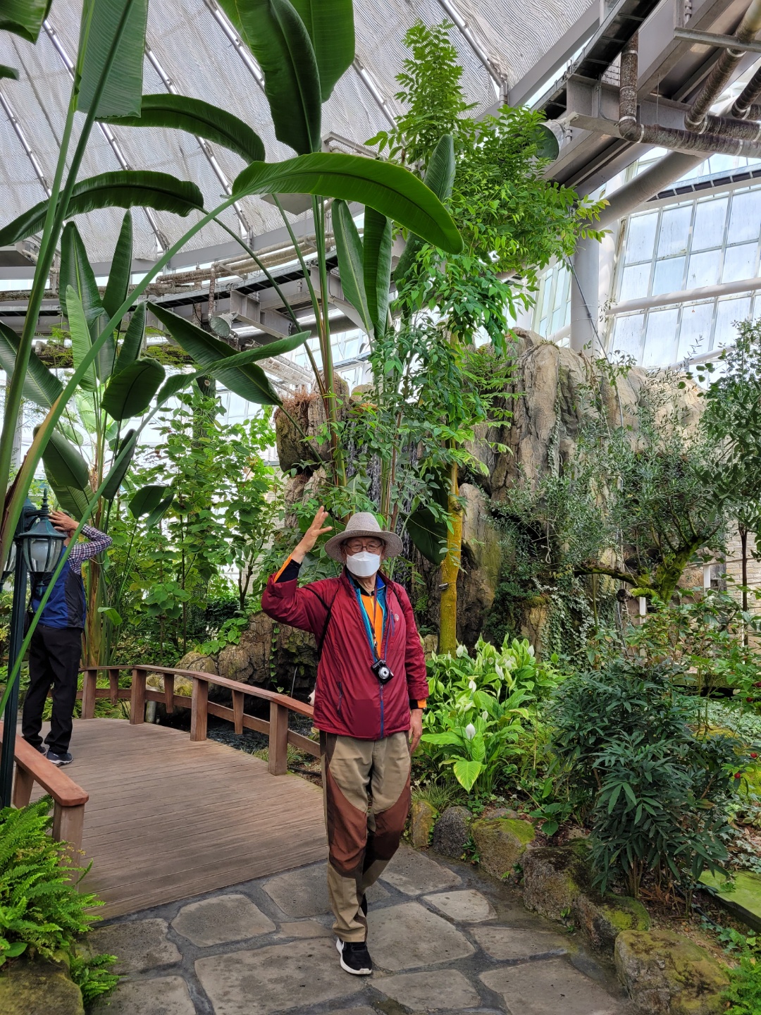 온실정원에는 열대 꽃과 선인장 폭포물소리 듣는다.