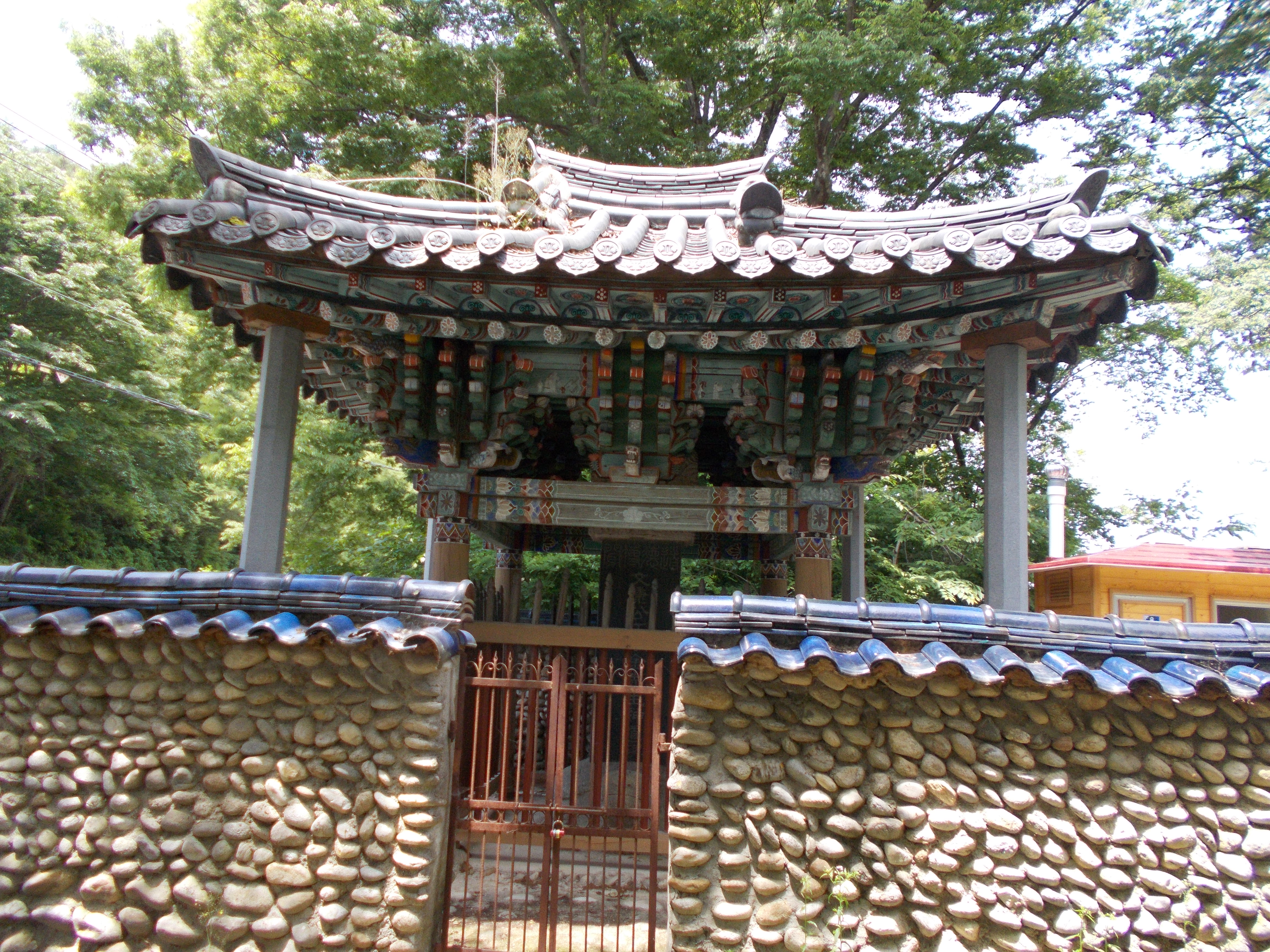 둥근 몽돌을 쌓은 신도비각 담벽이 특색있고 멋지다.