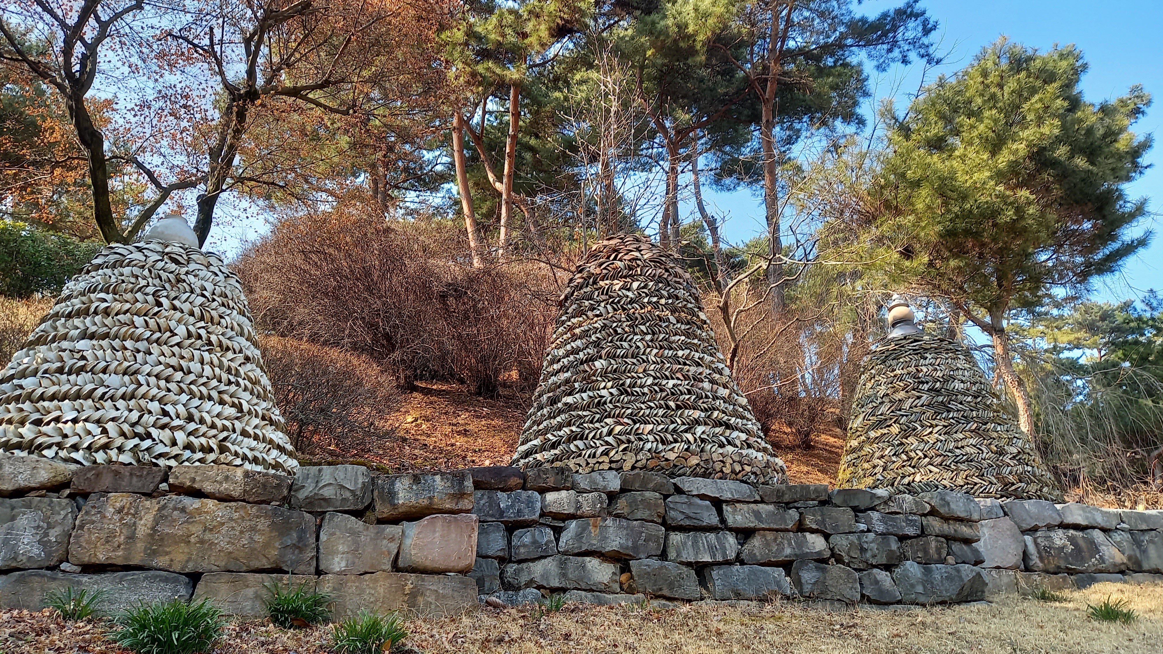 낮은 산 능선위에 앉은 고분들 아름답다.