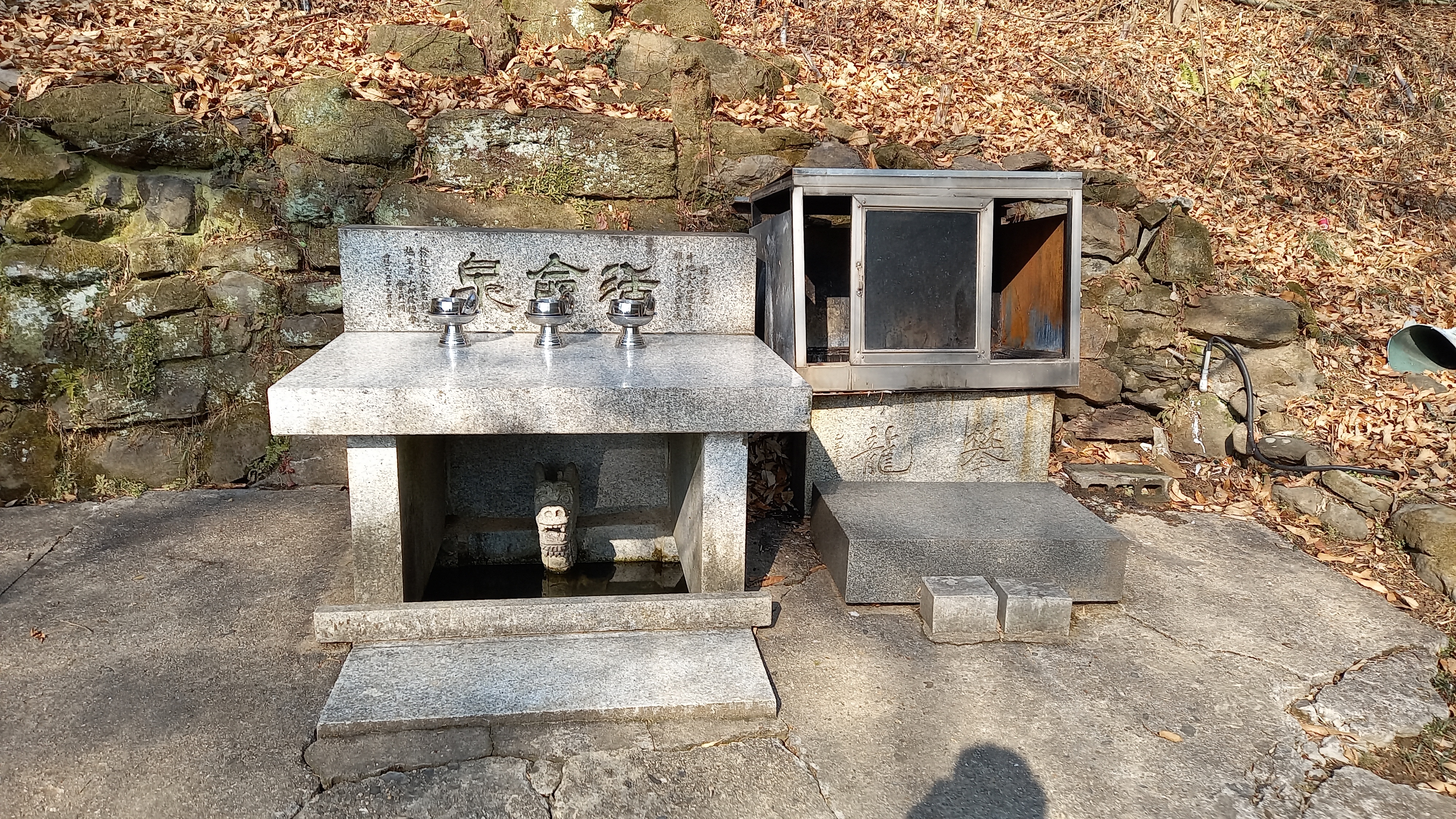 주산 줄기 좋은 효험있는 약수터 황명천에서 약수로 목줄기 씻고