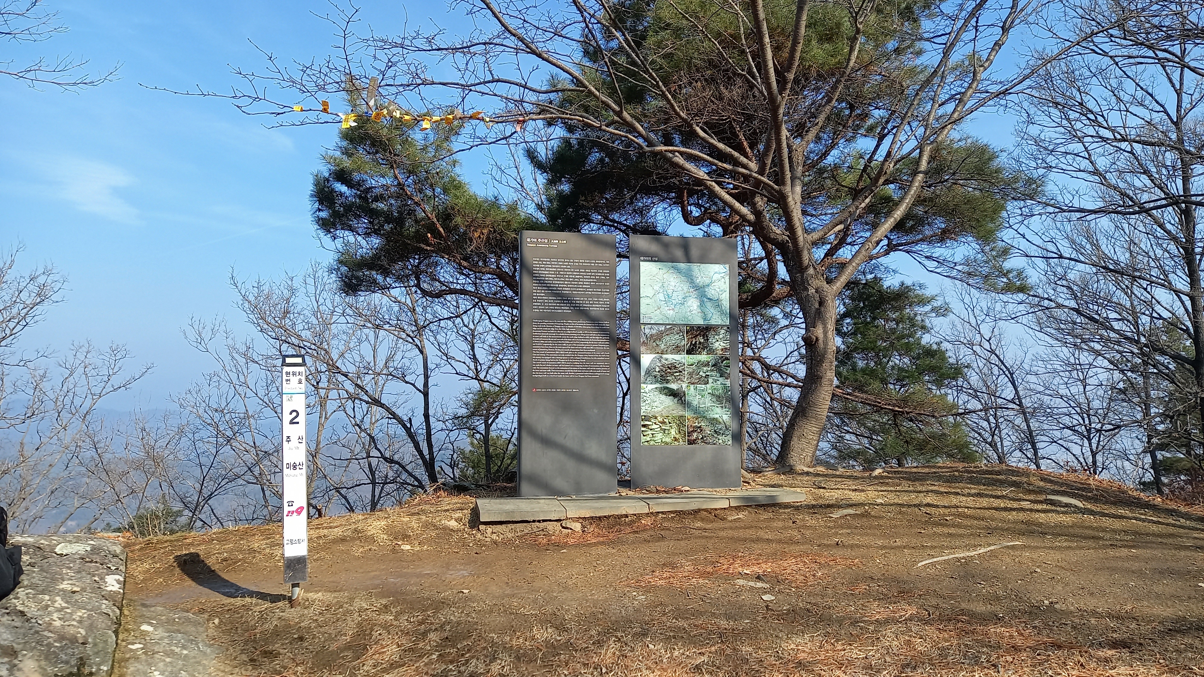 주산산성터 유적이 돌 무더기로 앉아 쉬고