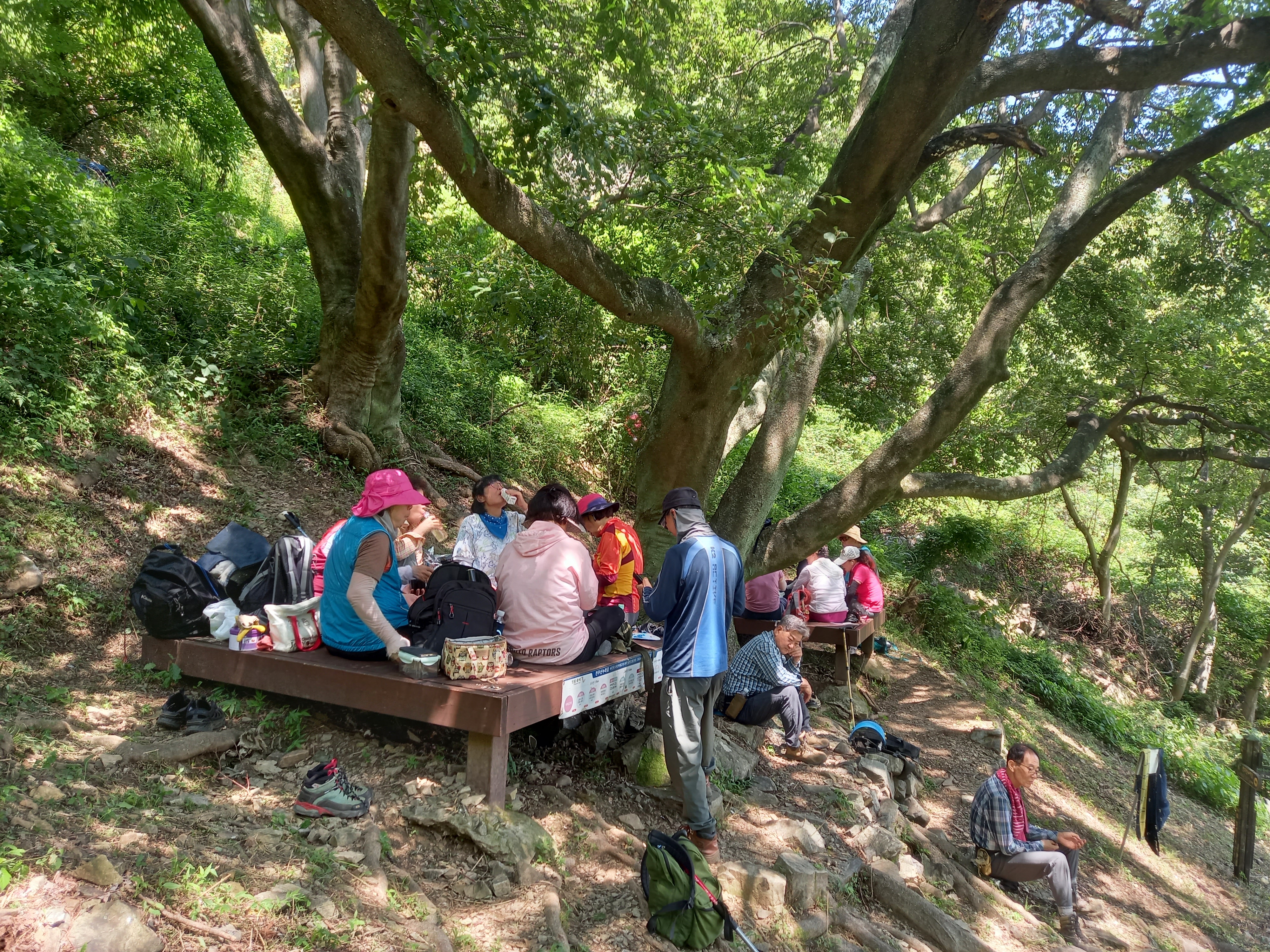 팽나무 숲 쉼터에서 제초작업팀과 만나 점심먹고