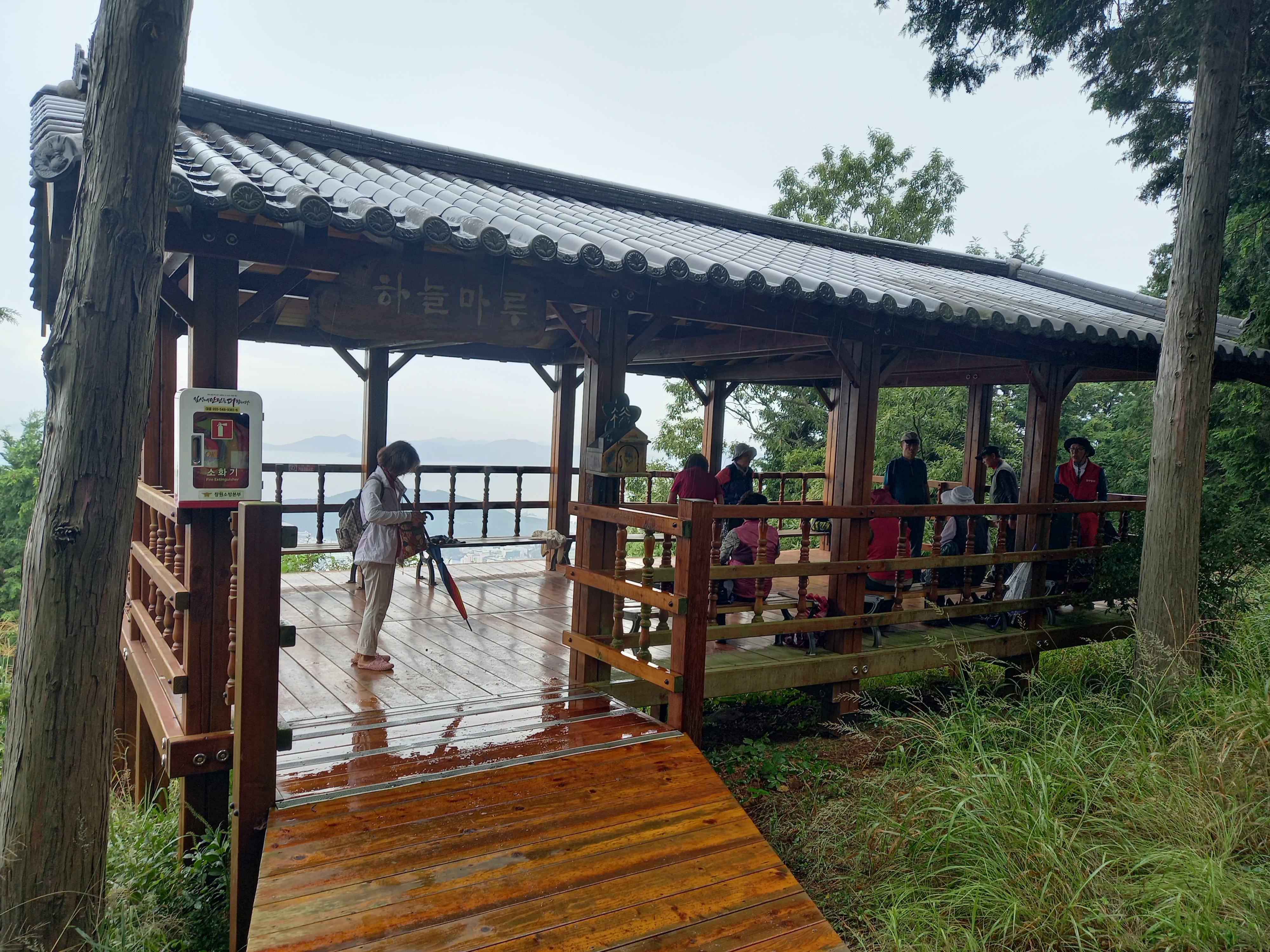 | 25.9.25 진해드림로드 모처럼 만에 걷다. 코스 : 진해문화센타-진흥사-하늘마루(점심)-안민고갯길-안민휴게소-드림로드-하산길-진해남중 거리 시간 인원 : 14,105 보, 11.8km, 4.0시간, 15명 (짧은 거리 8명, 긴거리 7명) 특색 : 오래간 만에 진해드림로드 걷기 실행 (하늘마루 정자 팔각정 철거, 직사각정으로 대체) 가랑비 오다가 말다가 습도만 높다. 하늘마루에서 점심먹고 두 팀으로 갈라져 걸었다. (1팀 : 하늘마루에서 출발점으로 반환 8명, 2팀 : 드림로드 진행 진해남중으로 하산 7명) |