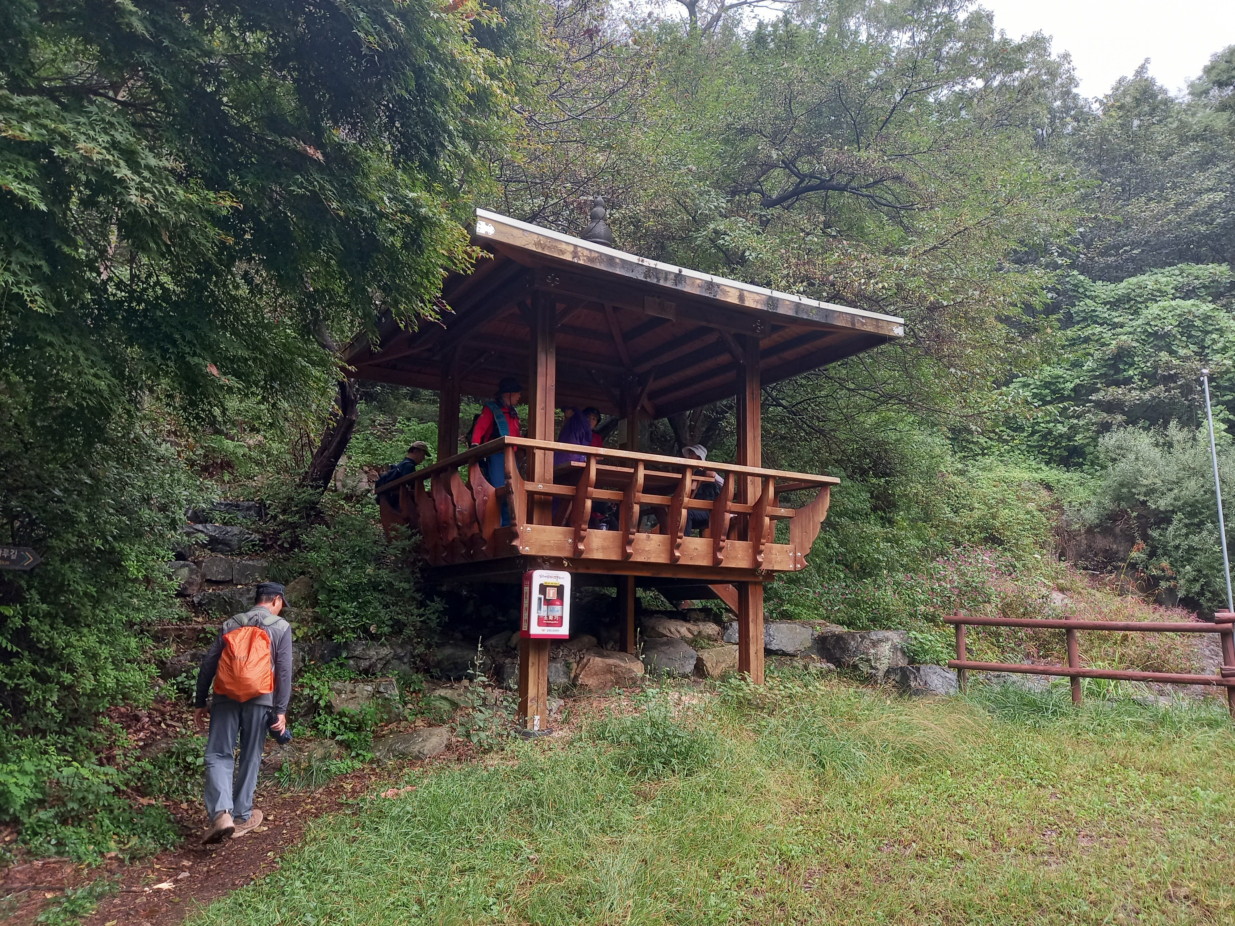 바로 올라가서 편백숲아래 녹차둘러선 4각정자에서 숨 쉬고