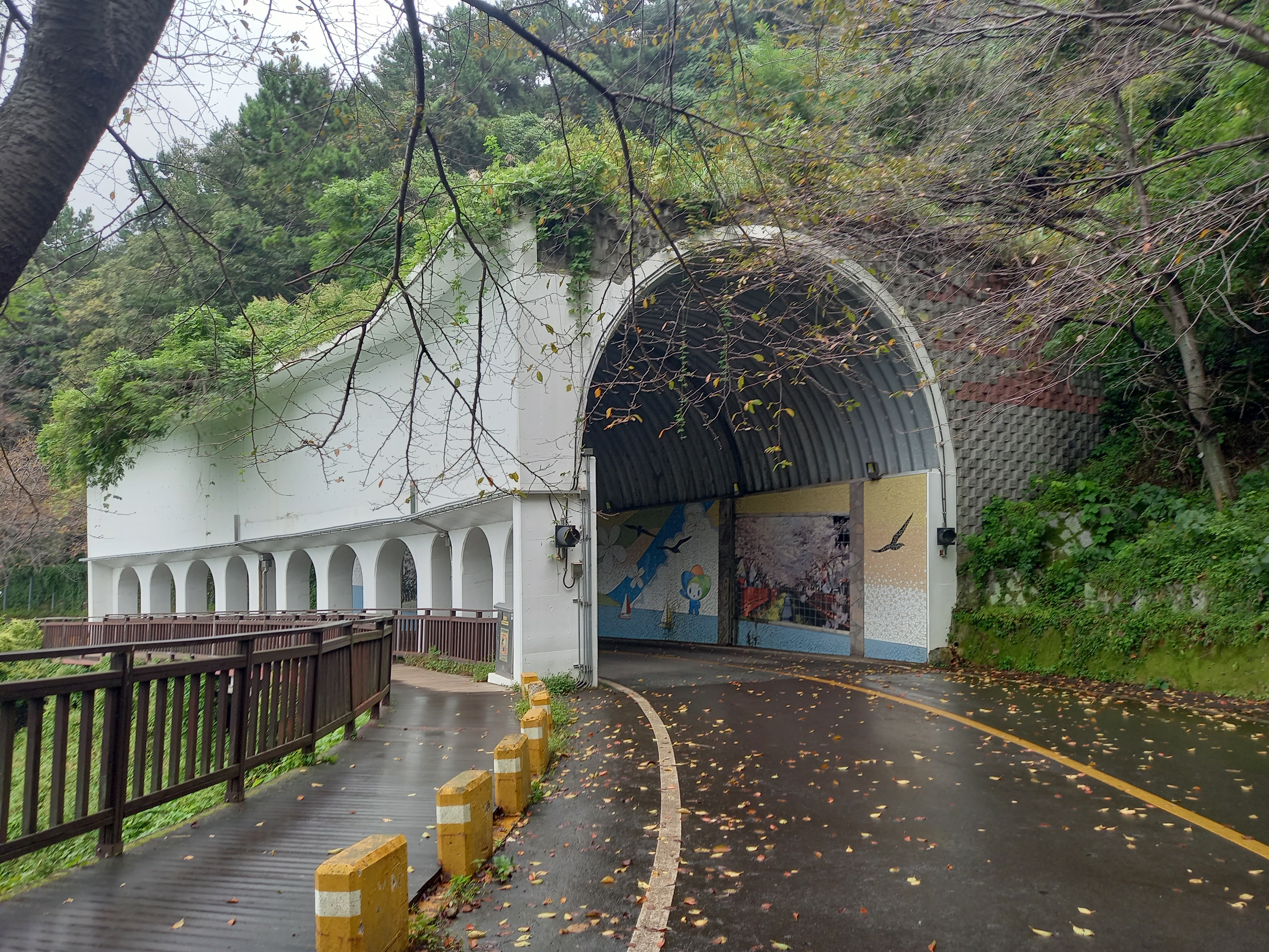 혹시나 절벽에서 쇄석 떨어질까 만든 터널길 지나서