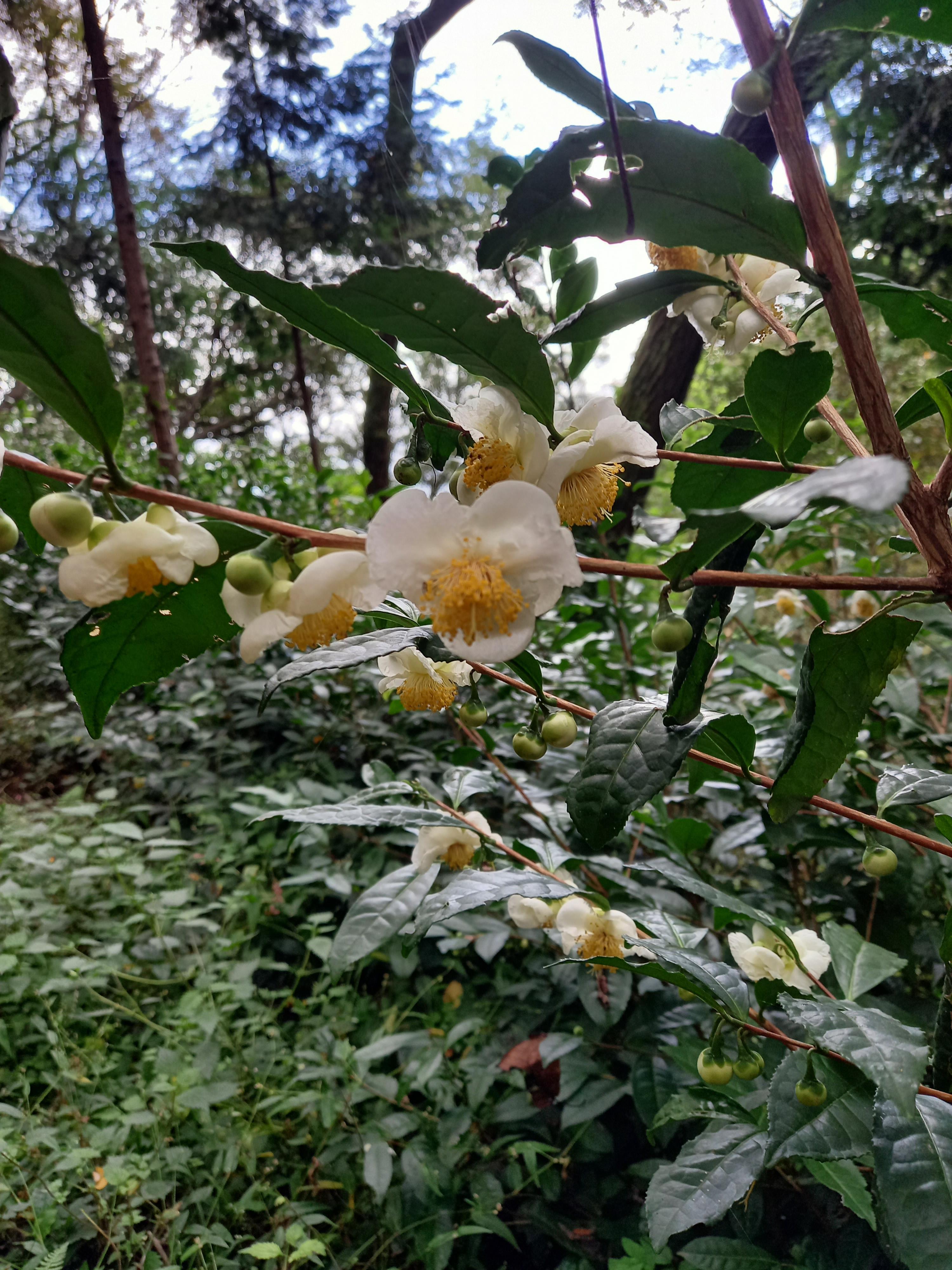 길가에 늘어선 녹차나무가 하얀꽃과 향기를 다북 선사한다.