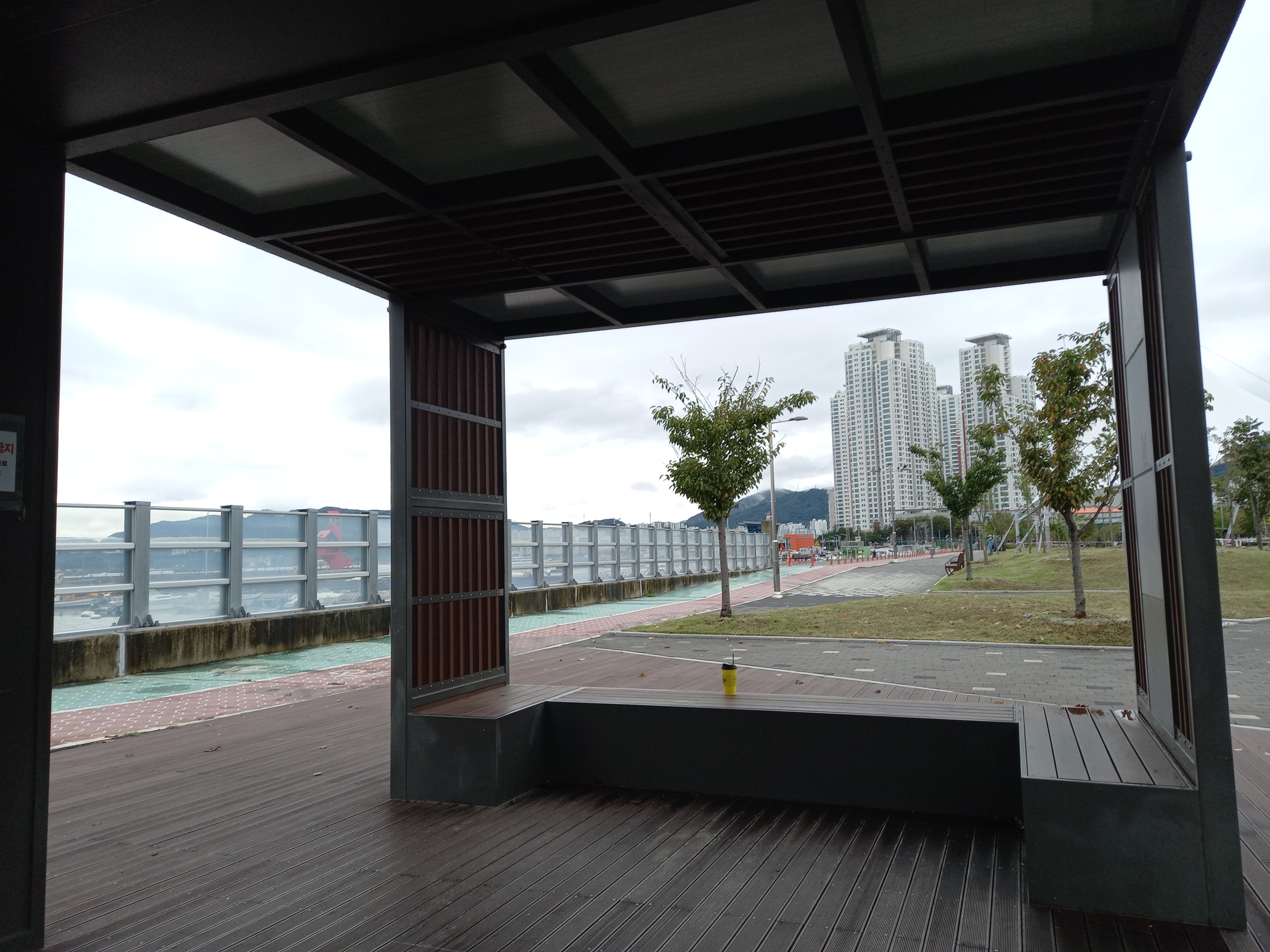 마산어항에 들어 마산만 풍광 휴게소에 앉아 쉬고