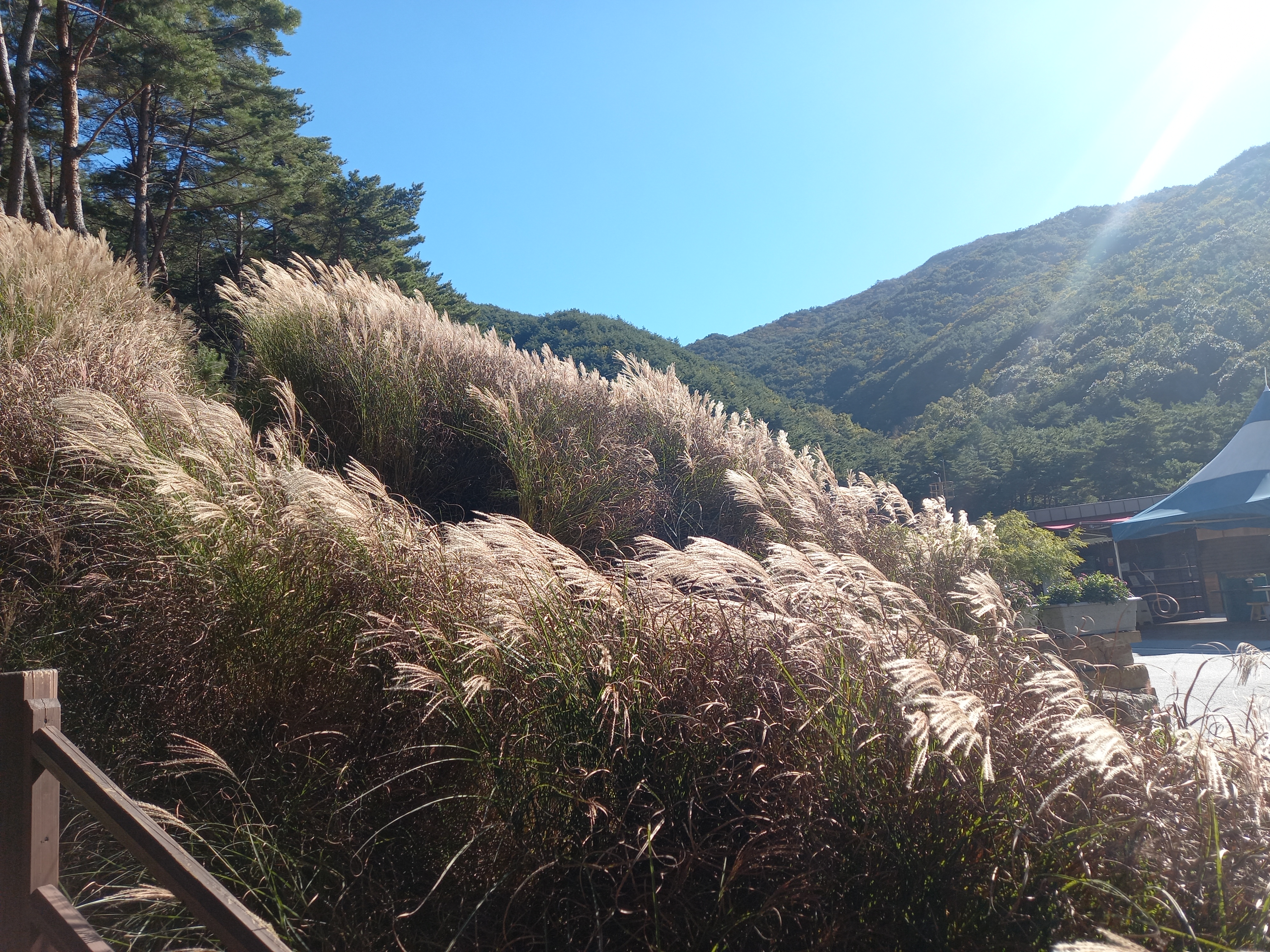 다음 코스는 합천 신소양체육공원으로 핑크뮬리 보러 가잔다.