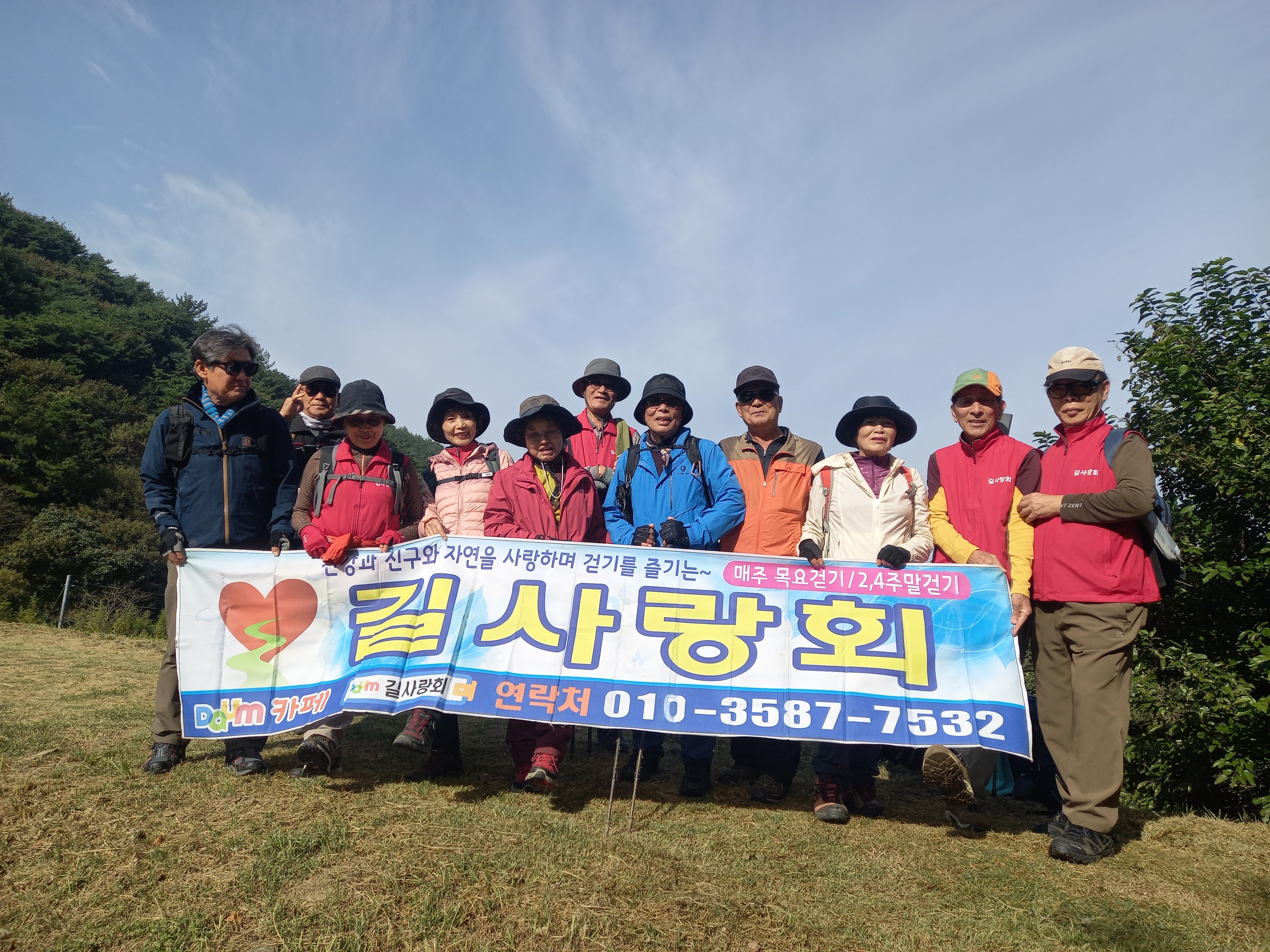 | 25.10.30 길사랑회 장등산둘레길 걷다./264 코스 : 마재고개-송정고개-평상휴게소-안성저수지-장등산둘렛길-바위전망대(점심)-금강계곡 약수터체육공원- 금강사(첨망대) - 성진아파트-마산역정류소-집 거리 시간 인원 : 21,930 보, 18.4km, 5.0시간, 길사랑회원 12명 특색 : 장등산둘렛길 가을 낙엽길 오르내림이 있는 산길 조금 피곤한 먼코스였다. 바위전망대에서 내려다보는 가을 풍치 아름다웠다. |