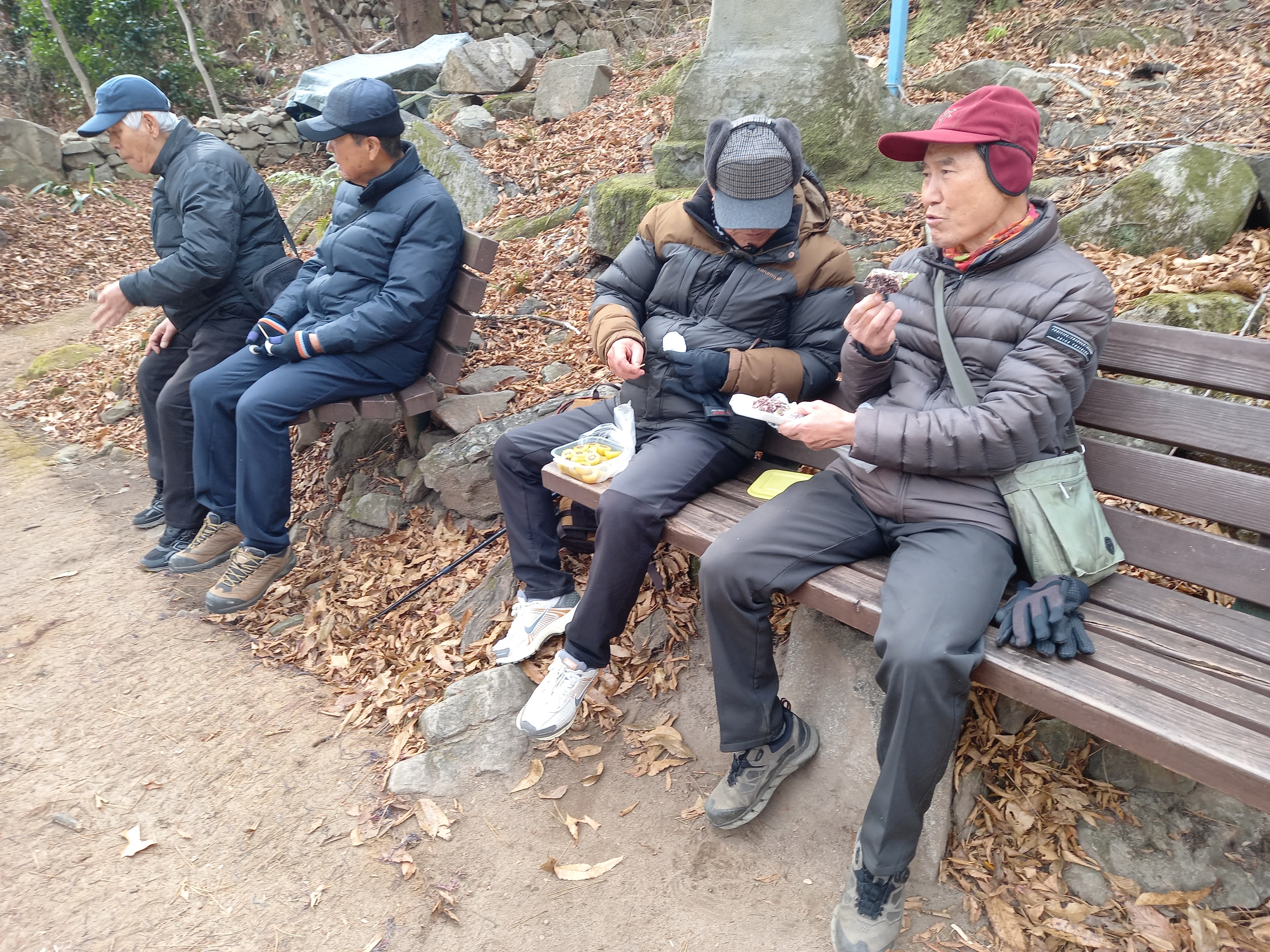 | 25.12.23 산수벗 서원곡둘렛길 거닐다./264 코스 : 관해정-석불암-약수터-자락길-너른마당-죽림로-관해정-교방천변길-회산교 명태본가 거리 시간 인원 : 10,445보, 8.8km, 4.0시간, 5명 특기 : 꾸므레한 겨울날 서원곡 걷기 피곤한 노년들 기분좋게 명태명가 즐겁게 마셨다 |