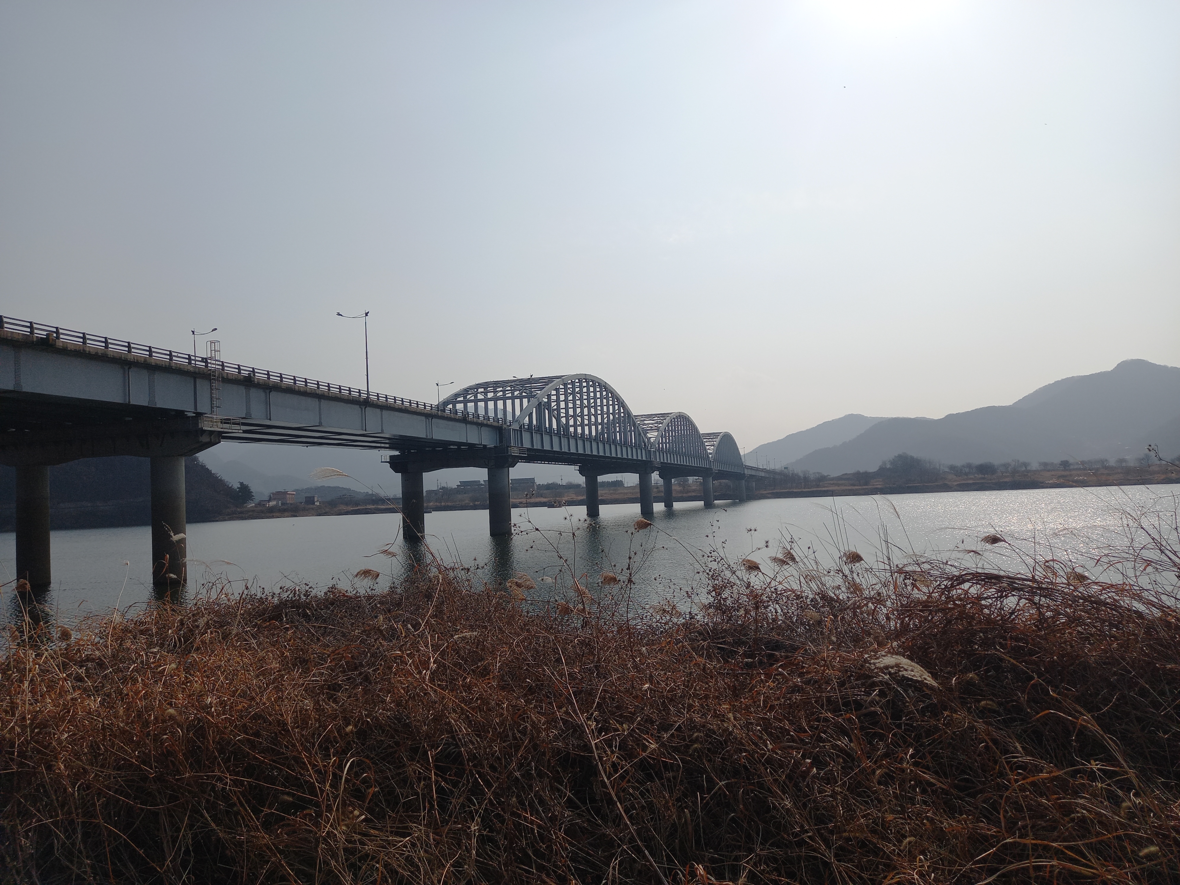 낙동강을 건너는 교통로 다리 교각아래로