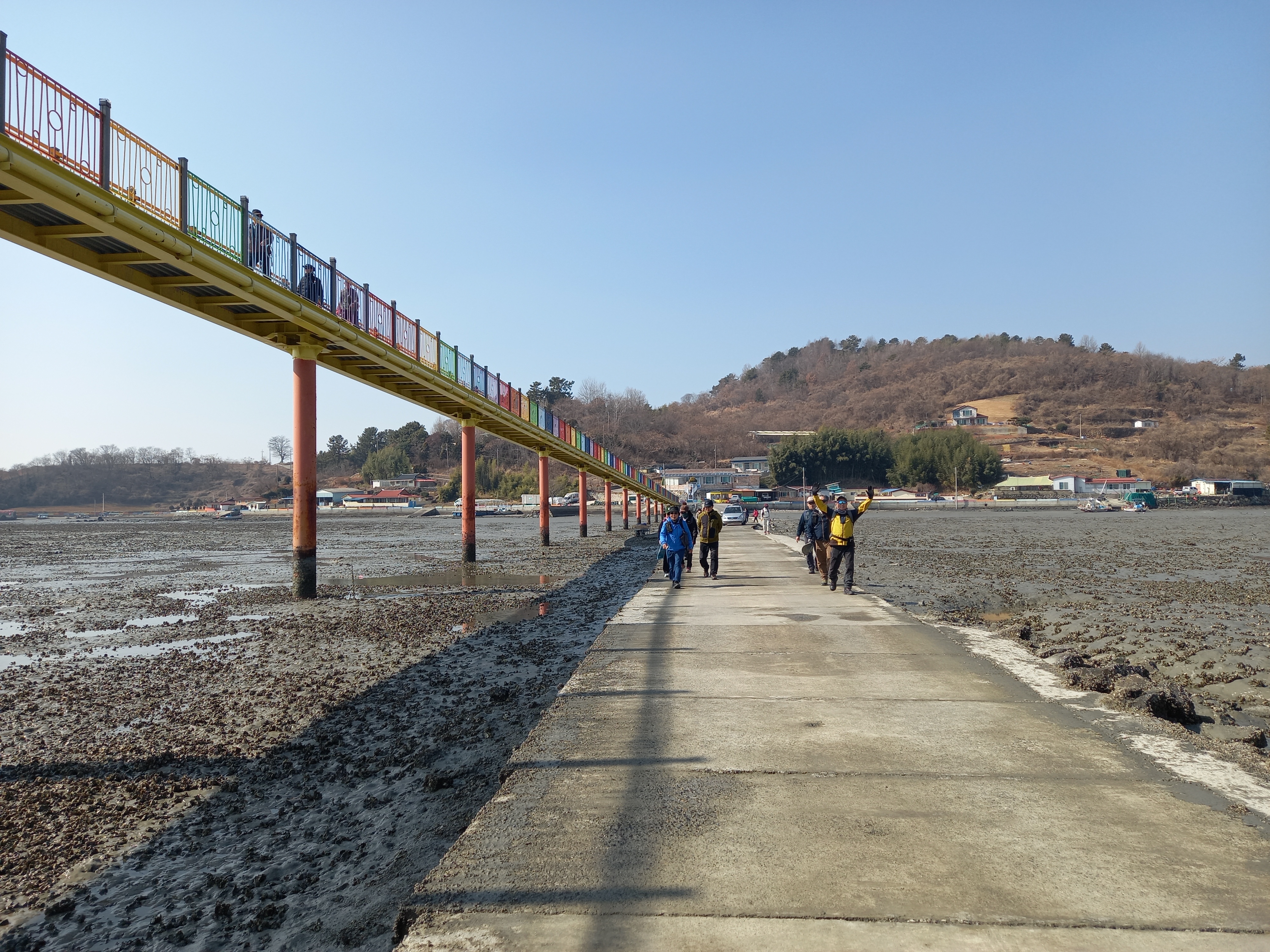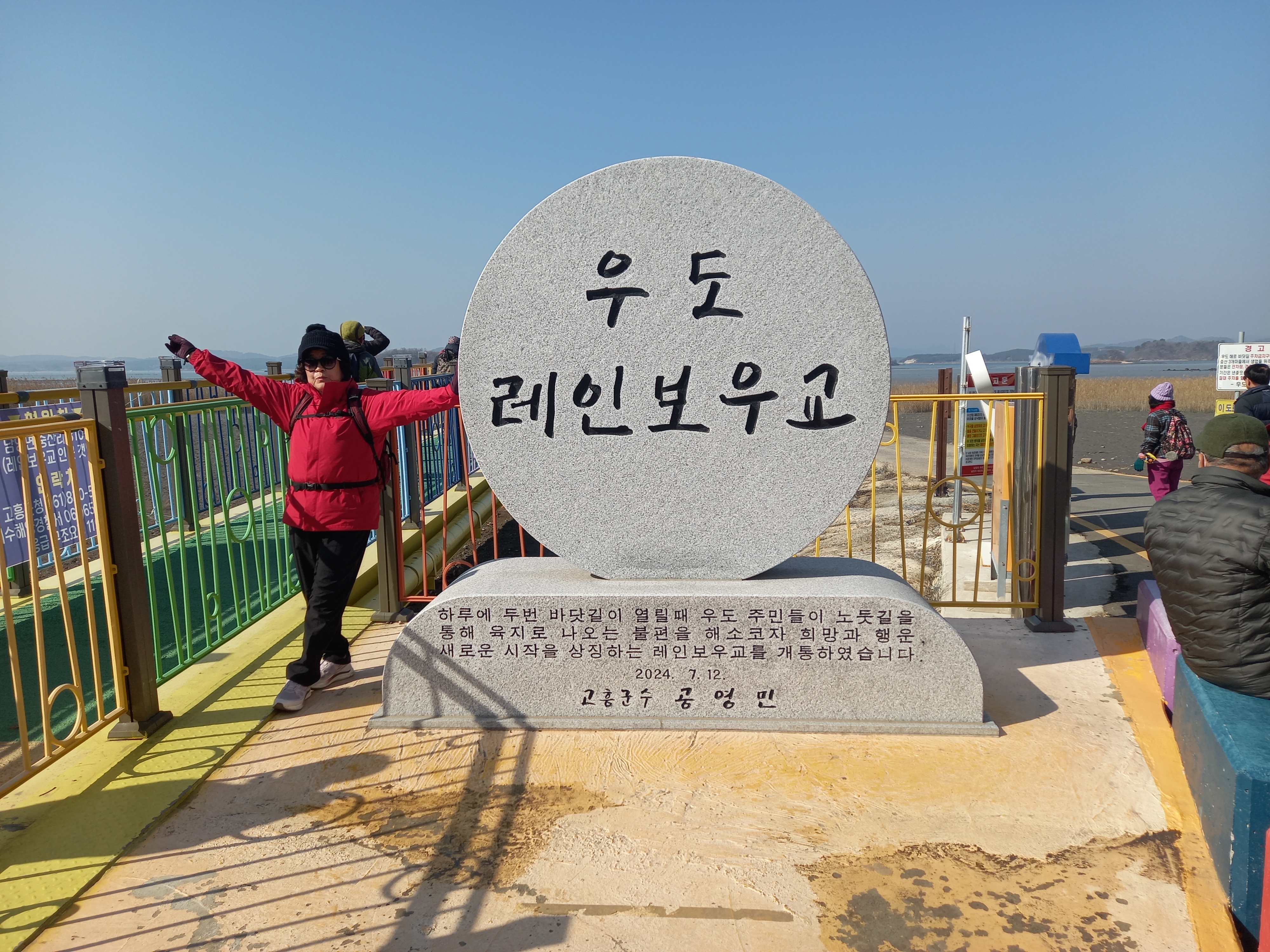 | 26.2.12 소풍객들 고흥 우도 무지개길과 벌교 갈대숲길 즐기다./264 코스 : 마산역 - (태산관광) - (사천휴게소) - 고흥 우도길 주차장 - 국민체조 - 기념촬영 - 무지개교 1km - 우도 정상 둘레길 - 우도정상전망대 - 느티나무 고갯마루 - 성도교회 - 우도항 - 이가식당 - 해안로 - 우도 출구 - 우도마을진입도로 - 우도주차장 - (태산관광) - 과역 동방기사식당(돼지불고기 꼬막 백반 맛집) - (태산광광) - 벌교 꼬막공원 - 갈대밭 데크길-벌교만 데크교 건넘 - 건너편 갈대숲데크길 - 벌교쪽 데크교 - 벌교 부용교(국도) 건넘 - 벌교꼬막공원 - (태산관광) - (사천휴게소) - (마산역) 거리 시간 인원 : 18,030보, 15.1km, 걷기 4.5시간, 왕복버스타기 3.5시간 총 8시간 소요, 소풍회 42명 참가 특기사항 : 최대인원 걷기 참가하여 만원버스 동참 고흥 우도 진입 무지개다리 바다갯벌위 걷고 우도정상 전망대 올라 멀구슬나무 많았고 우도 마을 황토밭 새봄맞이 동네 따뜻하고 우도해안둘렛길 갯펄위 진입도로 걸어 나오니 바다를 건너는 모세길 갯펄드넓은 해안 오늘 8시 25분부터 오후 4시 9분까지 2물 바다 열리는 길 바닷가 마을의 조금길을 이해하고 과역면 과역 동방기사식당 돼지불고기 꼬막백반 맛집 점심 만복하고 벌교갯펄 갈대밭 데크 산책로 1순환 상쾌하게 명작 사진 찍었다. 외지 산책여행은 언제나 해가 질녁에 돌아오니 모두 건강 기쁨이다. |