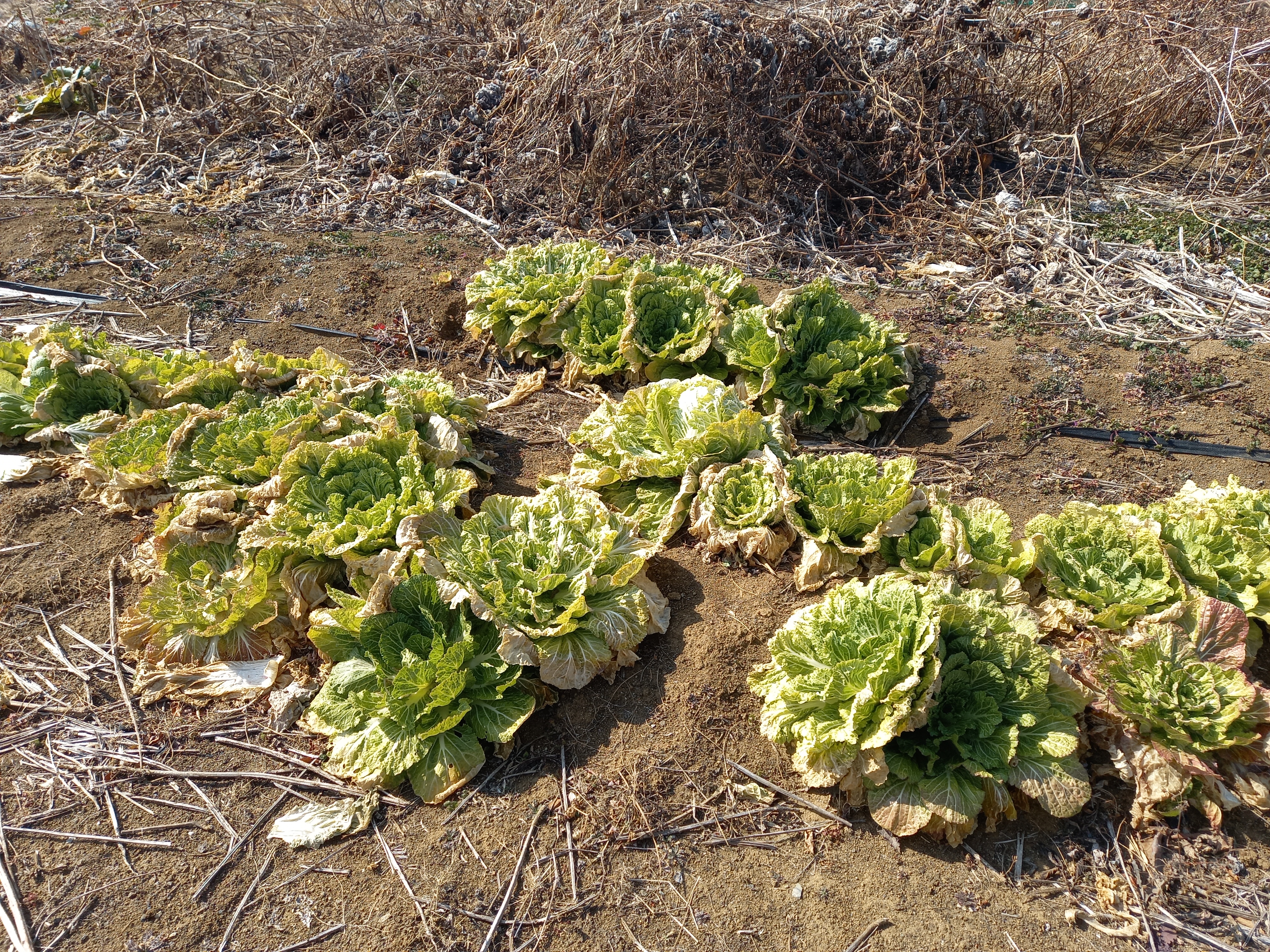 능선길 오르며 양지쪽 황토밭 쫙 벌어진 봄동배추 먹음직 침 나오고